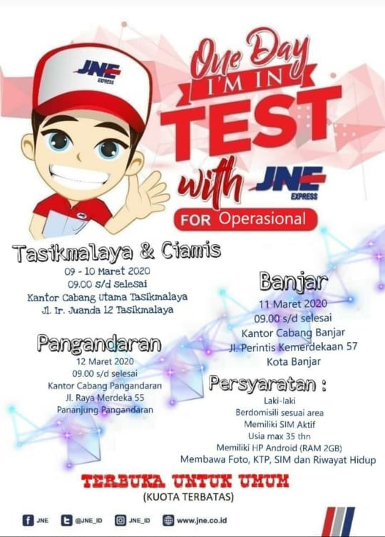 Lowongan Kerja JNE Express 2020 Area Tasikmalaya - Loker Karir from 1.bp.blogspot.com Lowongan kurir sim c untuk langsung penempatan segera di butuhkan untuk sim c aktif untuk pengiriman barang dan dokumen wilayah jabodetabek , s. Sebagai tambahan informasi hari ini bahwa mungkin pengunjung setia juga membutuhkan beberapa info seperti alamat dan kontak jne, jnt, penginapan, klinik layanan kesehatan, klinik kecantikan. Portal informasi lowongan kerja terbaru daerah cikarang bekasi, karawang, bogor, jakarta, dan tangerang untuk lulusan sma/smk saat ini jne kembali membuka lowongan kerja terbaru untuk kandidat lulusan sma/smk sederajat yang akan di tugaskan di jne area bekasi sebagai mitra kurir. Informasi lengkap tentang tarif ongkir jne terbaru mei 2020 dari jakarta ke bandung, medan, semarang, batam, manado pemalang. Jika anda membutuhkan informasi yang berkaitan. Dengan pengalaman selama 28 tahun, jne melayani kebutuhan pelanggan setianya, dengan jasa pengiriman dalam dan luar negeri. Temukan lowongan kerja kurir sopir driver terbaru untuk loker lazada, jne, sicepat, anteraja, j&t, shopee express, dll. Jika ada info loker terbarunya akan kembali kami update disini.