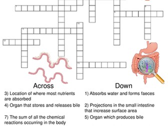 Crossword puzzle of the human digestive system. Which is part of the digestive system sends food to the lungs? Learn key terms, words, definitions, and much more about the digestive system with our crossword game quizzes. A long folded tube inside the body. The place where waste is stored before it leaves the body.